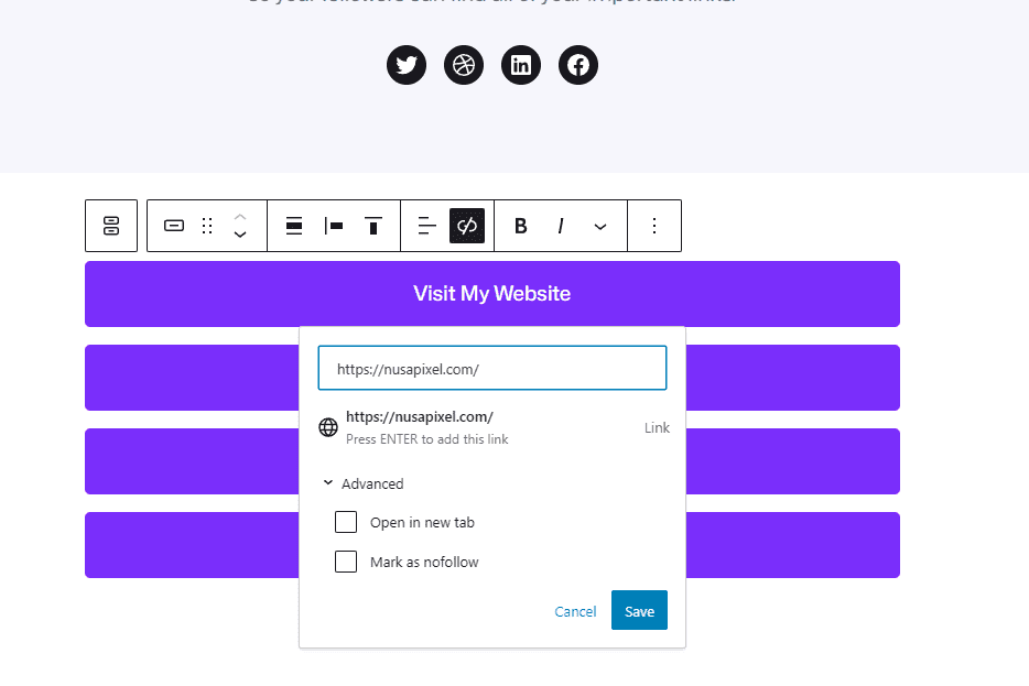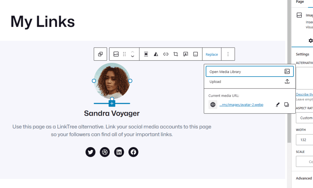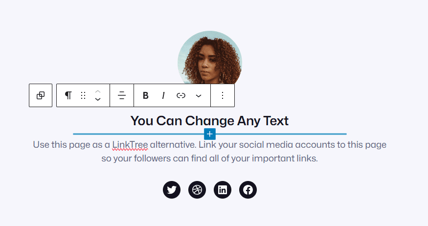 Gutenberg, the default WordPress editor, now comes with a pre-built pattern for bio link pages. It’s like having a professional designer in your pocket, minus the hefty price tag.