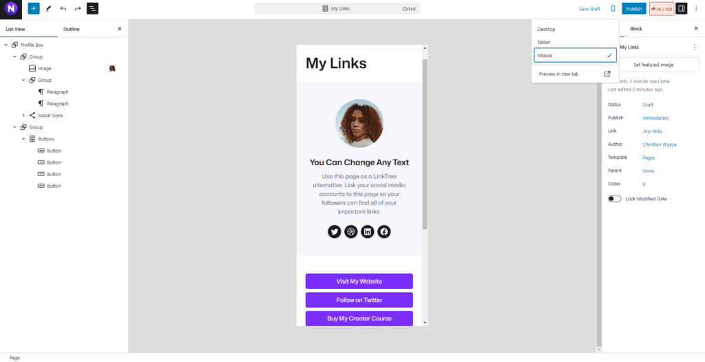 With WordPress and its built-in Gutenberg editor, you can whip up a professional-looking bio link page in no time.