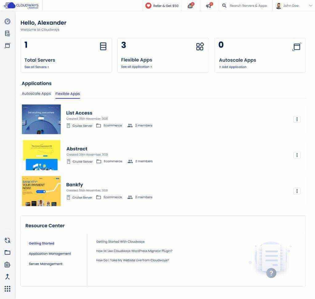 For example, this is the screenshot of Cloudways:
